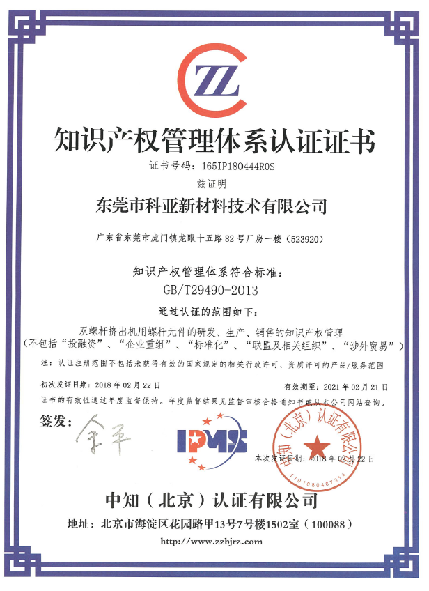 - 東莞市科亞新材料技術(shù)有限公司獲國(guó)家知識(shí)產(chǎn)權(quán)管理體系貫標(biāo)證書(shū)